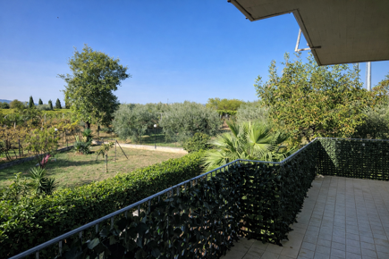 SOGGIORNO: cassettiera, divano a tre posti, Smart TV ed ampio balcone.
